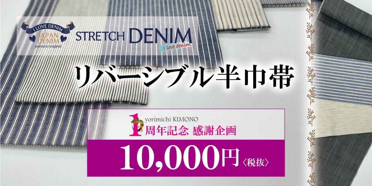 周年記念【JAPAN DENIM】リバーシブル半巾帯単品 A柄 現品限り 国産ストレッチデニム使用