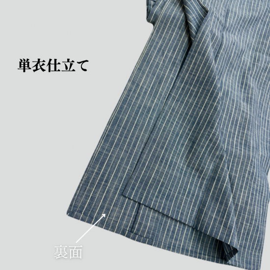 ■ 仕様:国産デニム生地(坂本デニム製)、細番手糸使用、単衣仕立て(広衿・居敷当てなし)