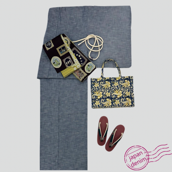 ■ 注意事項:デニム特有の色落ち・縮みあり。淡色帯や襦袢、白足袋などとの併用時は要注意