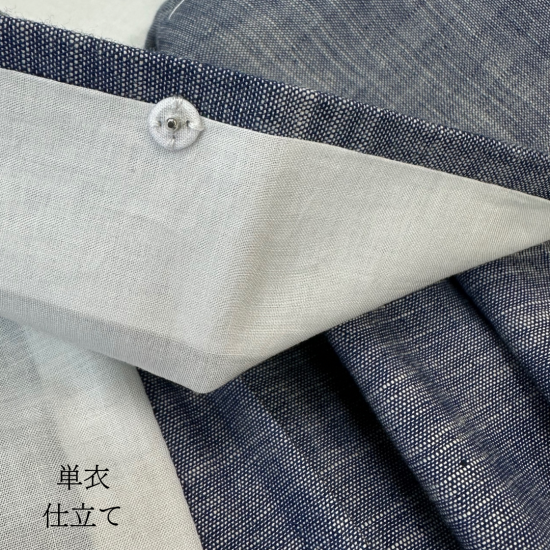 ■ 仕様:国産デニム生地(坂本デニム製)、細番手糸使用、単衣仕立て(広衿・居敷当てなし)