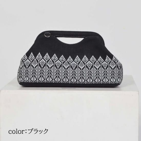 森をイメージしたプリミティブなモチーフの編地のクラッチバッグです。