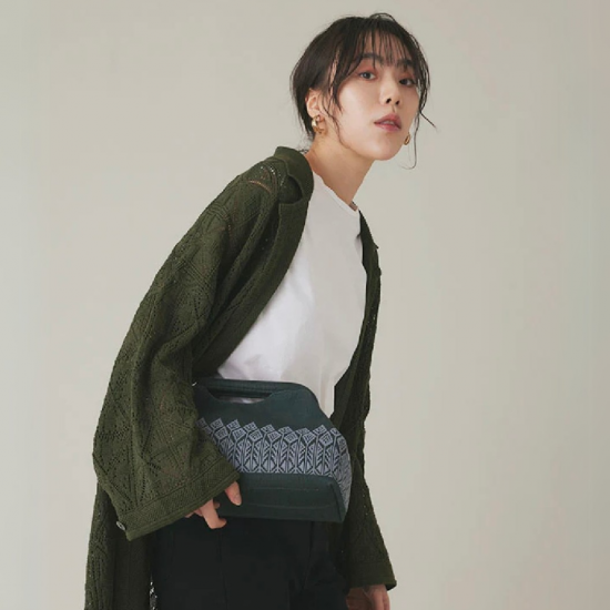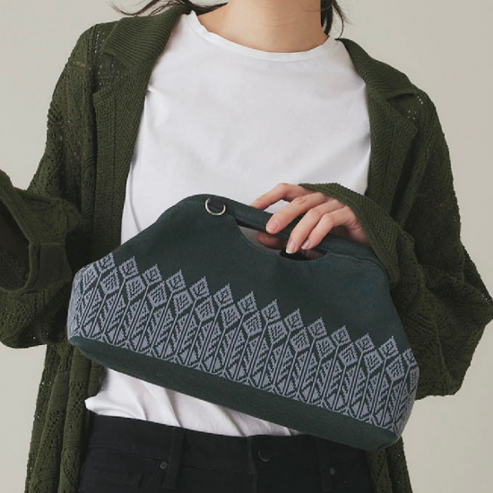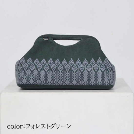 森をイメージしたプリミティブなモチーフの編地のクラッチバッグです。