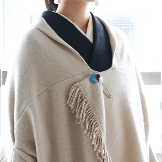 ストールやマフラーのずれ落ちを防止するだけでなく、アセテート樹脂のツヤや深みのある色が美しく、コーディネートのアクセントにお使い頂けるアイテムです。