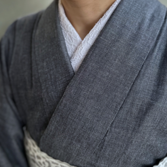 A:はい。洋服感覚で羽織れる軽やかさが特徴。まずは長襦袢なしで、タートルネックやパーカー、ブラウスなどと合わせて和洋ミックスもOK。