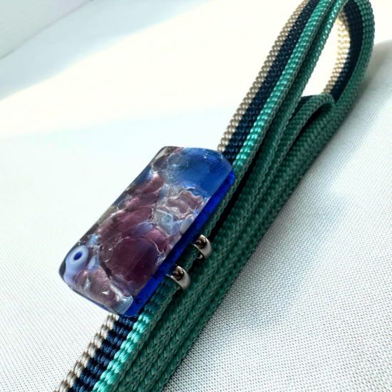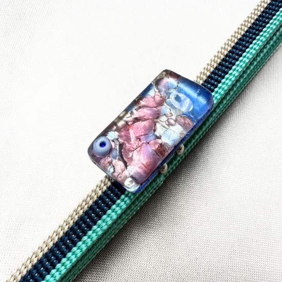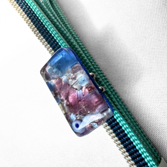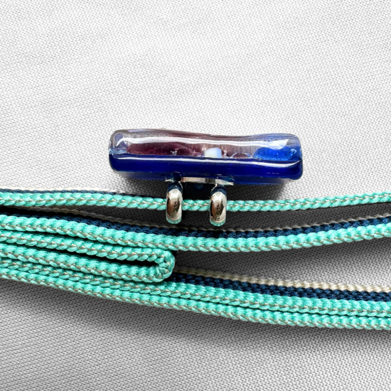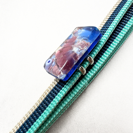 ベネチアンガラス帯留 三分紐セット【生成×紺×薄浅葱ストライプ】☆