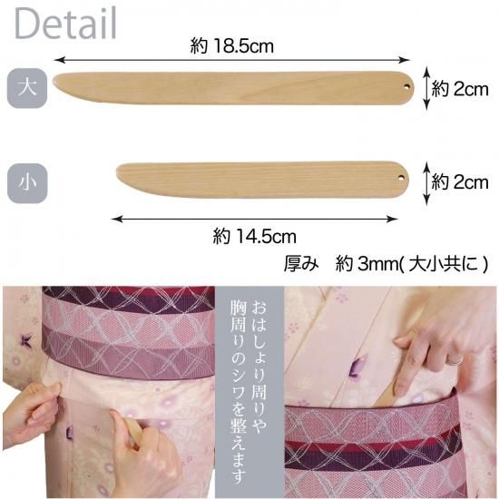 指では届きにくい細かな部分にスッと入り、シワを伸ばしたり、帯まわりを綺麗に仕上げる時に活躍します。
