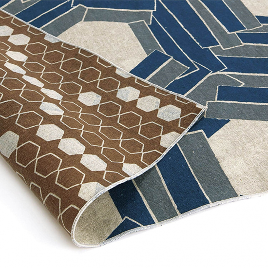 綿麻両面風呂敷【亀甲】kikkou(ネイビー)