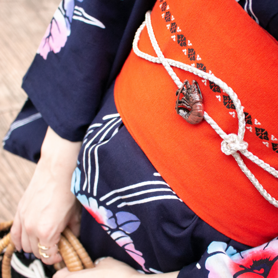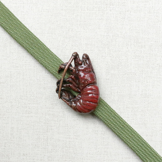 獲れたて新鮮の伊勢海老がそのまま帯留めになりました。光沢と色合いにこだわり、リアルな仕上がりになっています♪和服や浴衣に合わせて、シックでクールなイメージを出したい方にぴったりです。