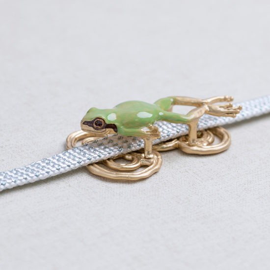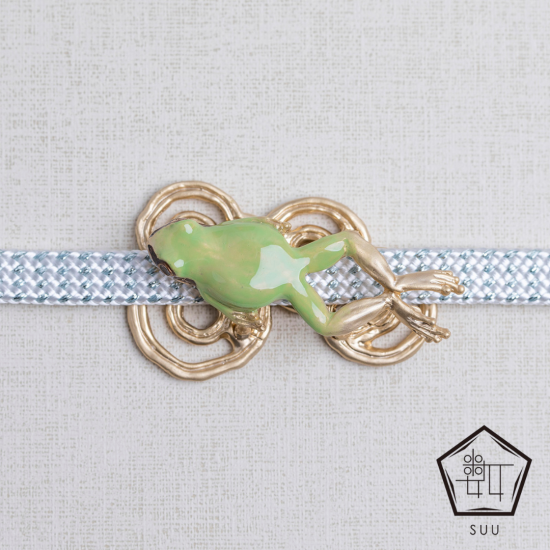カエルと波紋の間に帯締めを通す立体的な造り。