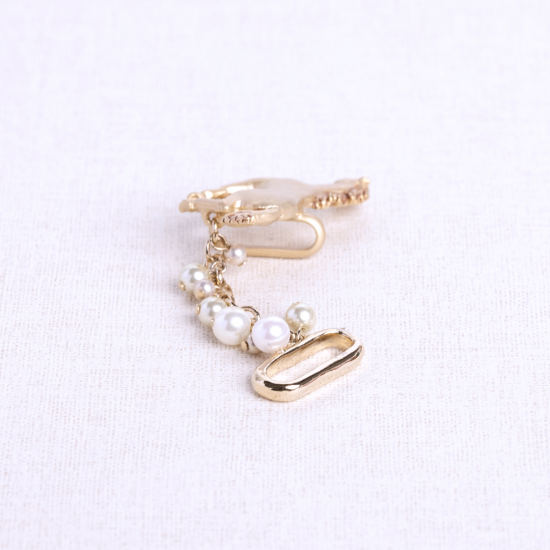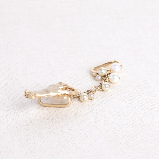 右側の金具に付いているパールが外側を向くように着用するとシルエットが整います。
