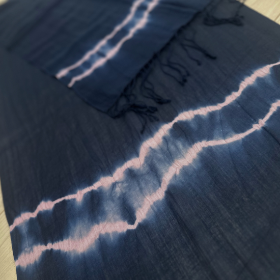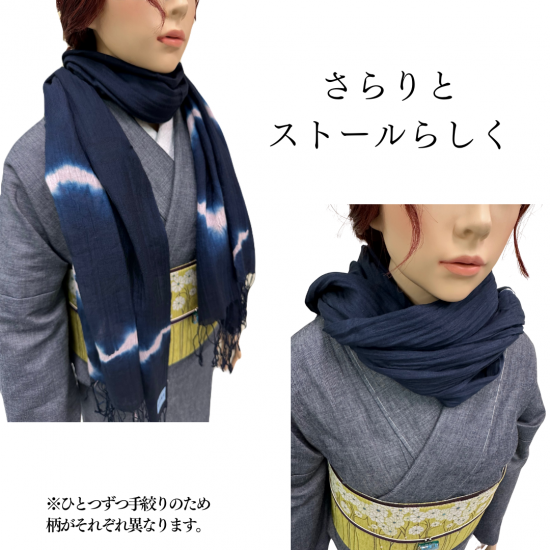 カシミアシルクストール×琉球藍泥×京絞り【K】紺藍*和洋兼用☆