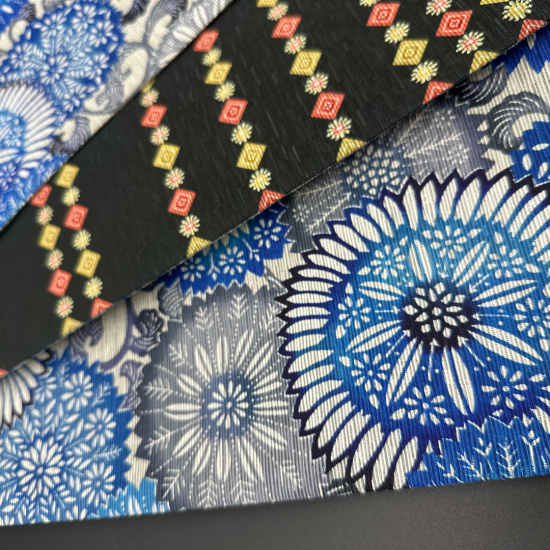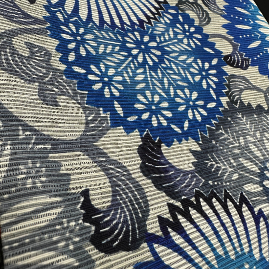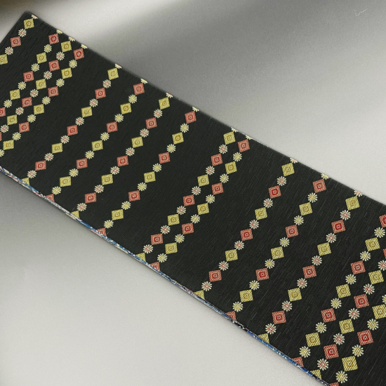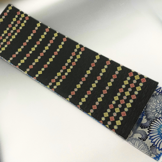 約425cmとゆとりある長さで、定番の貝ノ口から三重仮紐を使った華やかな変わり結びまで、自由なアレンジが可能。