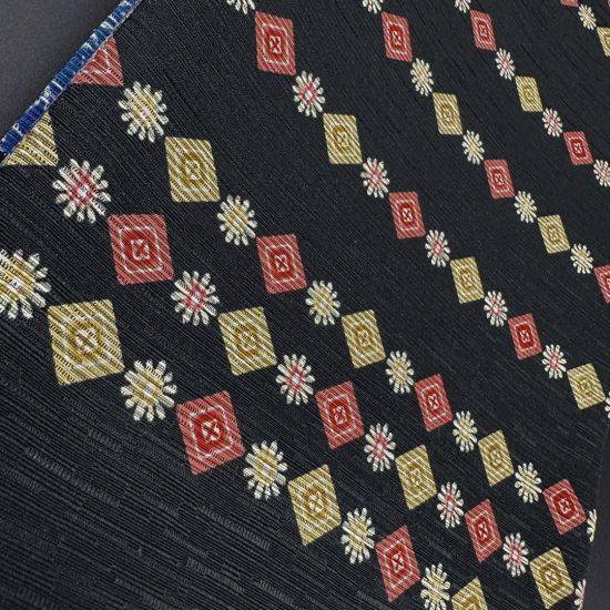 紬のような節を持たせた生地は、カラフルでありながら落ち着いた雰囲気。木綿や紬など普段着物との相性も抜群です。