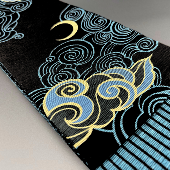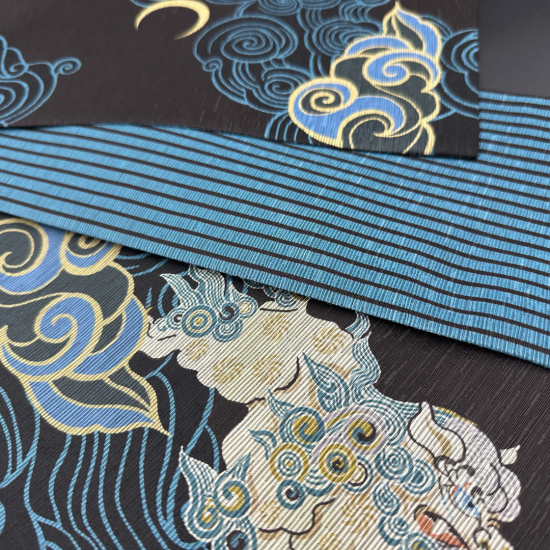 約425cmとゆとりある長さで、定番の貝ノ口から三重仮紐を使った華やかな変わり結びまで、自由なアレンジが可能。