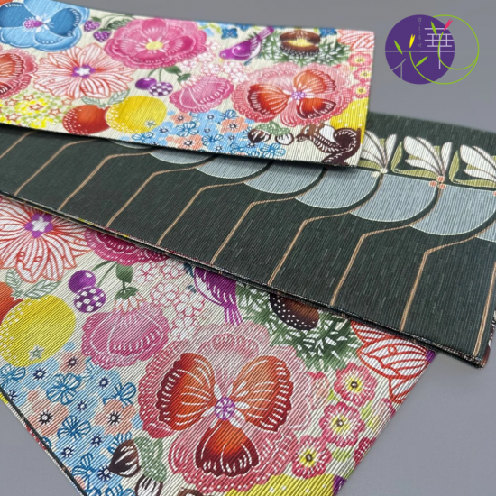 約425cmとゆとりある長さで、定番の貝ノ口から三重仮紐を使った華やかな変わり結びまで、自由なアレンジが可能。