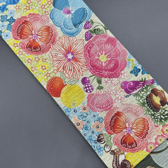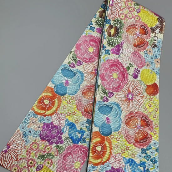 召しませ華*リバーシブル半巾帯【カラフルガーデンA】新作