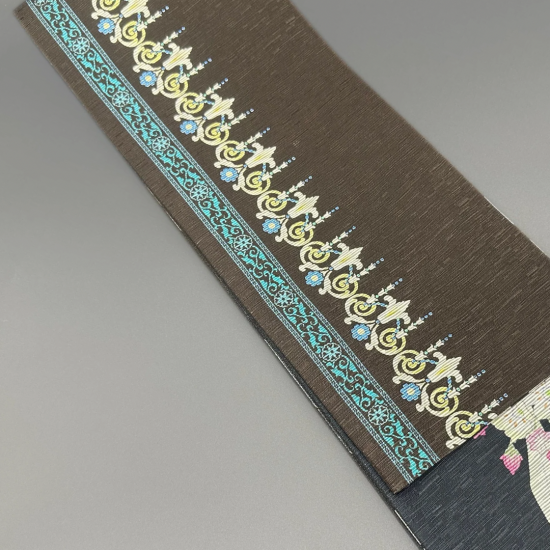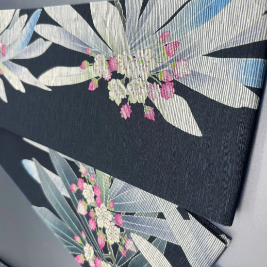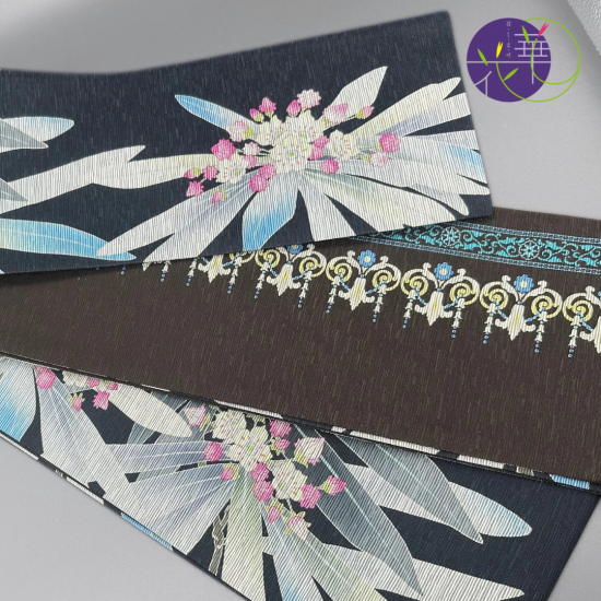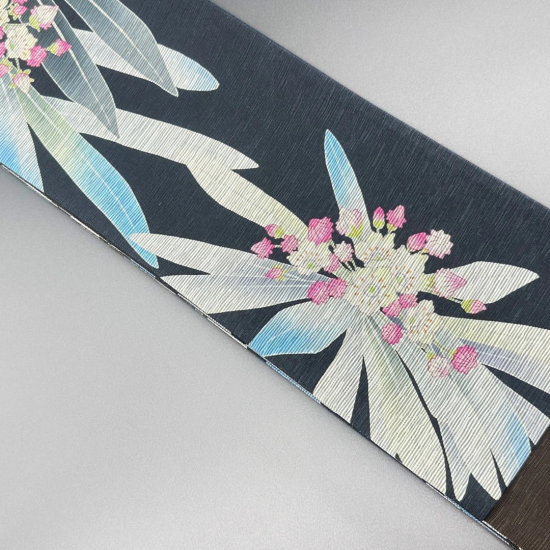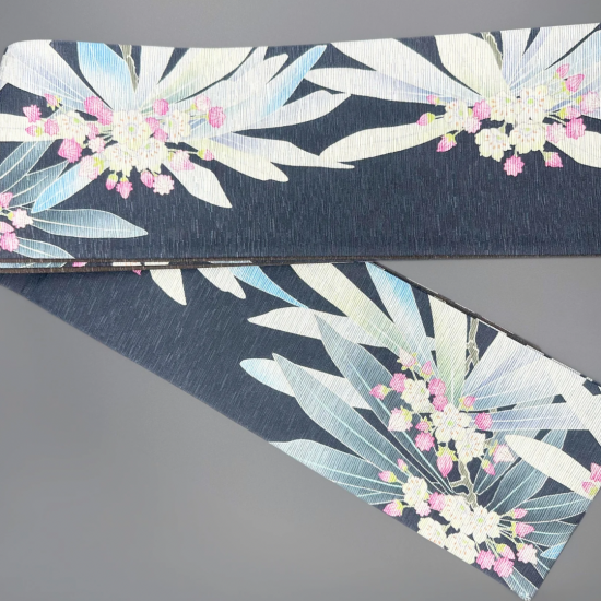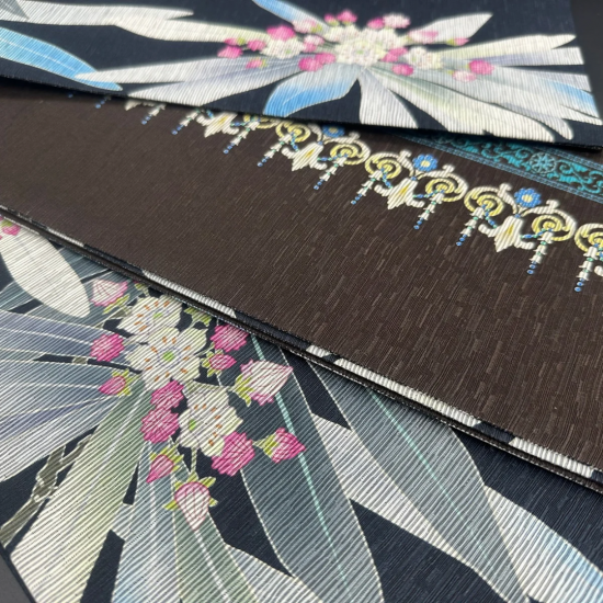 約425cmとゆとりある長さで、定番の貝ノ口から三重仮紐を使った華やかな変わり結びまで、自由なアレンジが可能。