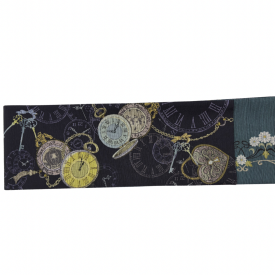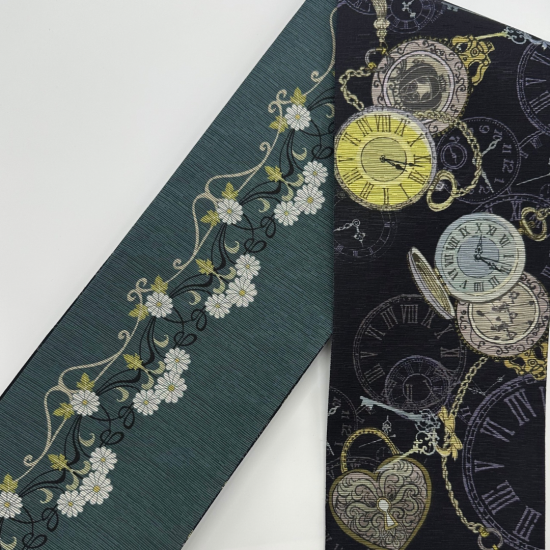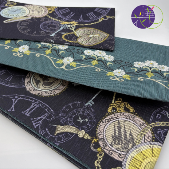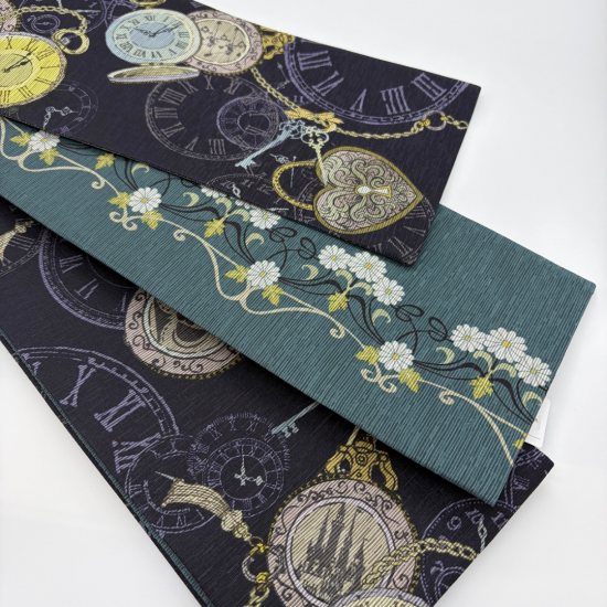 約425cmとゆとりある長さで、定番の貝ノ口から三重仮紐を使った華やかな変わり結びまで、自由なアレンジが可能。